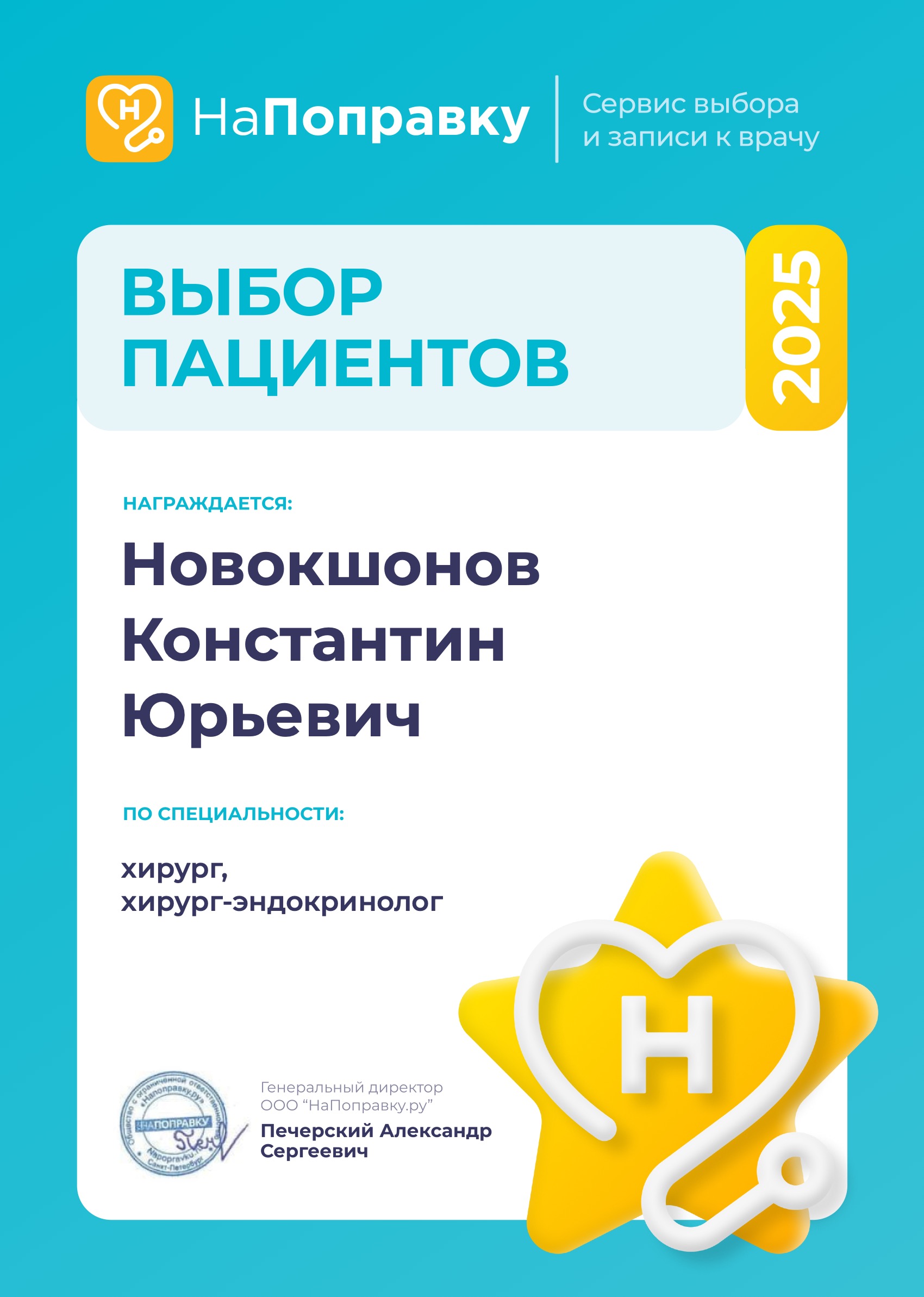 - С 2010 г. по настоящее время Новокшонов Константин Юрьевич - хирург-эндокринолог отделения эндокринной хирургии, сотрудник Северо-Западного центра эндокринологии.